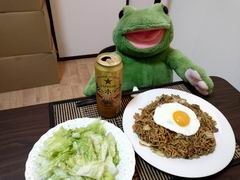 急に寒くなった為か風邪の引き始めみたいな感じですよー。ずーっと夏だったのにいきなり寒くなると体調を崩しちゃいますね〜。今夜は買ってきたのだけど串カツ、ざく切りキャベツで麦焼酎割の熱燗〜。シメは刻みネギ、刻み玉葱を入れた味噌ラーメンを食べて、温まって早めに寝ますー