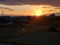 朝霞水門で日没〜 今日は一番日が短いそうですよー |