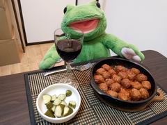 今夜はミートボールをポークチャップソースで〜。あとは鶏皮の焼き鳥、キャベツの塩昆布揉みでいっぱい〜。シメは濃い味味噌ラーメンですよー