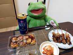 今日はすんごく忙しくて朝からバタバタ〜。夜にスーパーに行って、見切り品のおつまみを買ってきて晩御飯にしましたよー。焼き鳥盛り合わせ、たこ焼き、キムチでいっぱいです〜