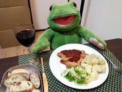 今夜はお安い国産豚ロースが売っていたので、久しぶりにポークチャップで赤ワイン〜。付け合せはこふきいもとキャベツのオリーブ油蒸しですよー。パンは中野のボンジュール・BONさんのレトロバゲットです〜。国産豚の脂身は甘くてうんまいなぁ〜