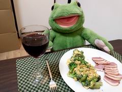 今夜はブロッコリーと卵のふわふわマヨ炒め、合鴨ロースで赤ワイン〜。シメは昨日の残りのクリームシチューを使ってドリアですよー
