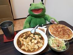 今夜は日清具多 辣椒担々麺付属の花椒入り唐辛子を使った、辛口麻婆豆腐、焼餃子、キャベツと玉葱のフライドエシャロット入り中華サラダで、麦焼酎ロックです〜。日清具多 辣椒担々麺ってよく買うのだけど、辛さ調整用の唐辛子が時々2倍増になっているので、持て余しているんですよね〜。辛いのはあまり得意じゃないので、通常量の半分しか使わないですよ〜