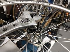 銀色でクラシックなデザインなので、カンパニョーロのローエンドホイールのVentoとSCIROCCOを使っているだけど、Ventoは要修理になったので、SCIROCCOの方のフリーボディのメンテナンスしました〜。エンドナットが固着していてビクともしないので、片側を万力で挟んで、潤滑油を吹いて柄の長いレンチでジワーッと回してなんとか外せましたよー。定期的にメンテしてグリスアップしておかないとダメですね〜