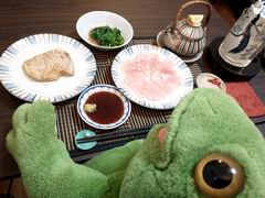 今夜はびんちょう鮪のお刺身、メバチマグロの西京漬焼き、菜の花の辛子和え、平茸とぶなしめじの土瓶蒸しで熱燗ですよー