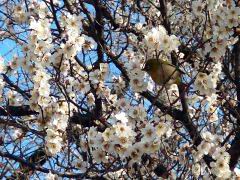 メジロが梅の花の蜜を吸っていたよ |