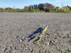 路上に鎮座しているカマキリ〜 偶に見かけるけど何してるのかな 鳥に食われちゃいそうですよー |