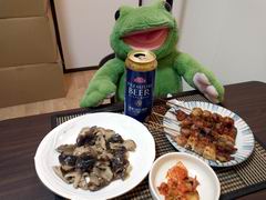 今夜は買ってきたのだけど、焼き鳥たれ焼き盛り合わせ、あとは産直で買ってきた、一袋税込み170円の菌床しいたけを、ガーリックバター醤油炒めにしました〜。あとはキムチでいっぱいですー