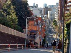 豊島区高田の、のぞき坂〜 天気の子で出てきた急坂ですよ 遠方にドコモクロックタワ〜 |