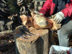 | 荒川右岸羽根倉橋下の梟彫刻を 彫っていたお爺ちゃんを発見〜 今は秋ヶ瀬橋下に引越しだそうです |
