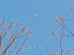 栴檀の木の上に飛行機〜 | 鴨やカワウがいる三宝寺池 |