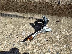 お昼に買い物に行った時に、路上にSHIMANO 105のフロントディレイラーが落ちてましたよ〜。ひどい状態だけど、ふつー落ちないよねー。落とした人、気づかなかったのかな〜
