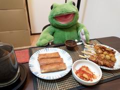 プレイトーキンカエルの青蛙(ちんわー)がいろんなとこにいろんな物を食べに出かけます。