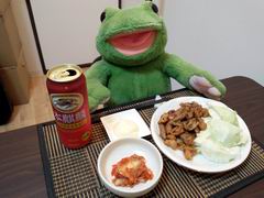 今夜は買ってきたのだけどチキンカツ、あとはハムエッグ、ざく切りキャベツでいっぱい〜。シメはソース焼きそば ういず目玉焼きですよー