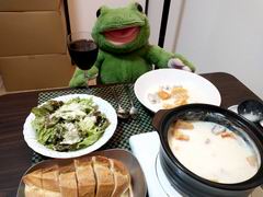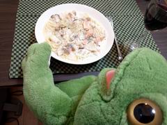 今夜はブロッコリーと卵のふわふわマヨ炒め、合鴨ロースで赤ワイン〜。シメは昨日の残りのクリームシチューを使ってドリアですよー